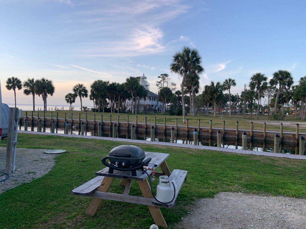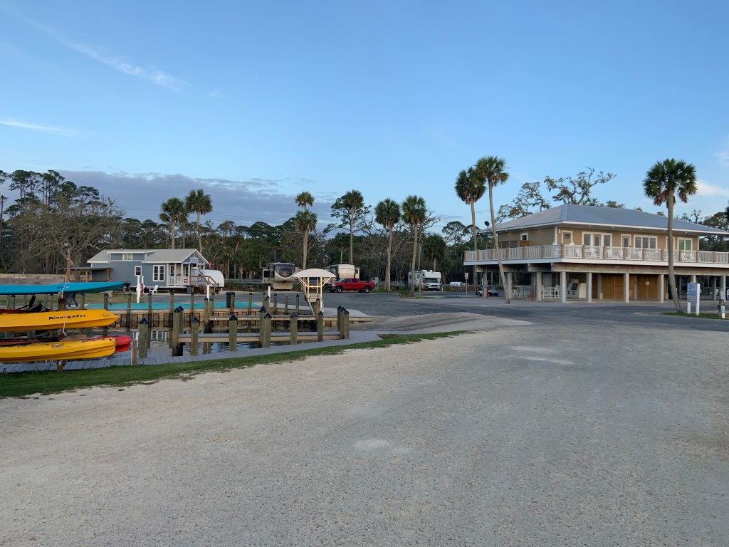 On Wednesday, we pretty much did a repeat of Tuesday, but we stopped by the Piggly Wiggly to pick up some produce. I was really proud of the kiddos for not driving me crazy throughout the store asking for everything they saw. We’re all getting better at communicating expectations and sticking to boundaries on this trip. As you can imagine, 300SF of living space is so much better when the weather outside is breezy and sunny. Izzy has really taken to fishing and wants to do a lot more of it. We hope to hire a charter so we can get more info on bay fishing. St. Joseph Bay is far different from regular sea fishing and we’re seeing plenty of fishermen come through the clubhouse with all their fish cleaned up. In fact, we have a group of pelicans (about 10-12) who like to hang out by the fish cleaning station on the dock and eat the leftovers from the cleaning of catches of the day.