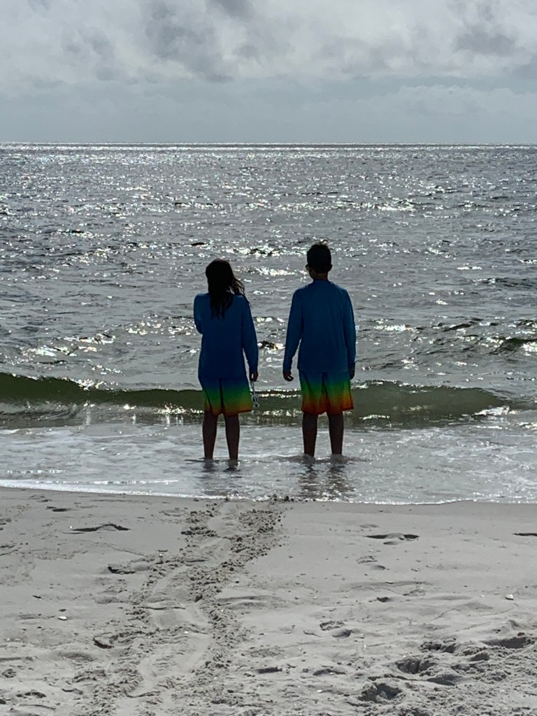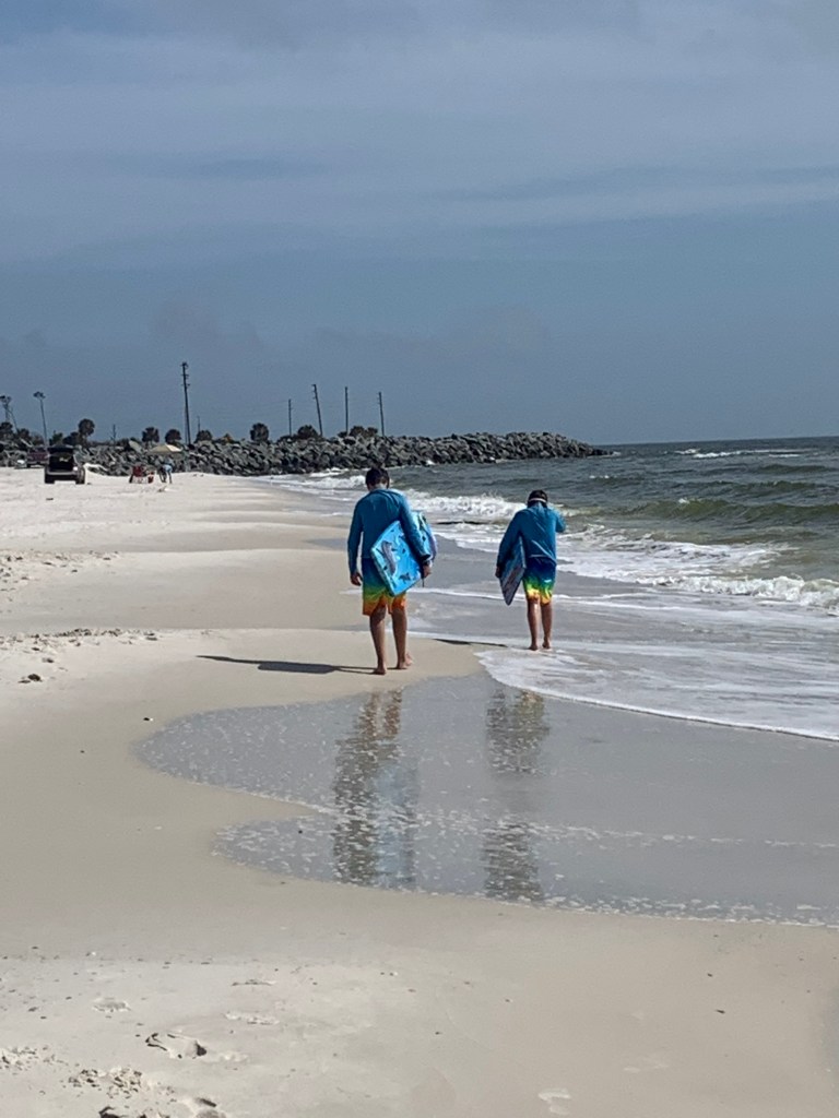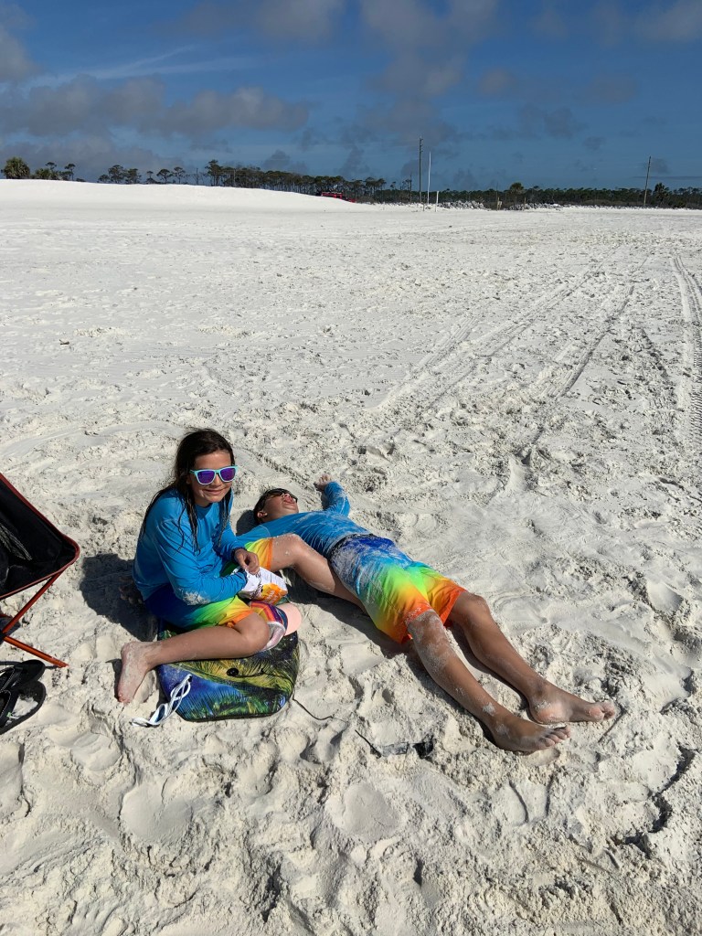On Tuesday we did our usual school in the morning and then headed to Cape San Blas. The locals had been telling us about this beach with it’s remarkably soft, white sands. We also learned that the dunes were non-existent after the hurricane and the water was all the way up to the road. The state had to pump the sand back in and rebuild the dunes. As expected, it was very quiet and we had the beach to ourselves. I drove up the way to the local grocery store to pick up some boogie boards for the kiddos since the waves were just right. Turns out the owner had a friend, currently a pastor, in Bend, OR. Small world. He also assured Ben that the fins he was seeing in the ocean belonged to dolphins, not sharks. I’m not sure Ben is totally convinced. Sidenote: Ben and Izzy have been feeding my mom-twinsy buying on this trip. I just think they look so cute!