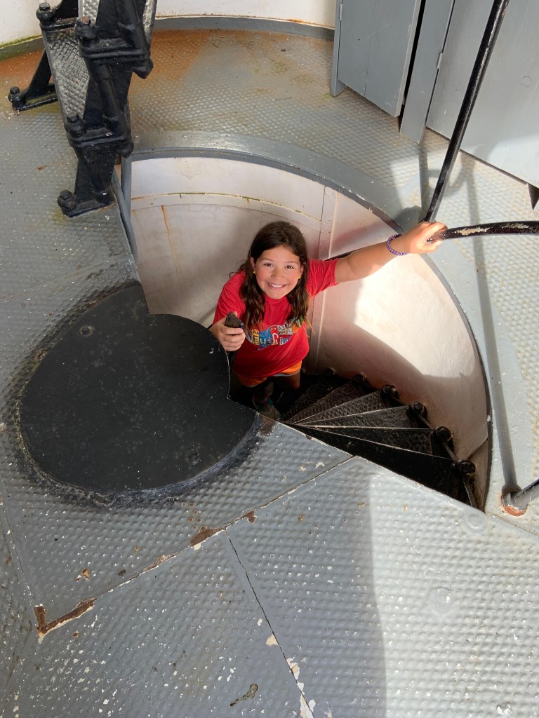 The lighthouse proved to be full of history. It was constructed in 1838 along St. Joseph Bay and is dubbed the ‘traveling lighthouse’ since it has been moved a few times. It was originally constructed because of the refuge the bay provided to mariners. The lighthouse was there through all the craziness and the demise of the town of St. Joseph and the establishment of Port St. Joe’s in the mid 1900s. The first keeper and his wife were there for almost 30 years. During WWII, ten guardsmen were stationed there. I’m not sure when, but the wooden stairs were replaced by an iron spiral set. Ben, Izzy and I climbed to the top and back down a few times taking in the views. (Izzy and I are practicing being twinsies too!) We also sang Judy, the volunteer on duty, a happy birthday since she was still working that day! Best part about a small town is that everyone has to help out. We took the keys from Judy and unlocked the lighthouse for her that day.