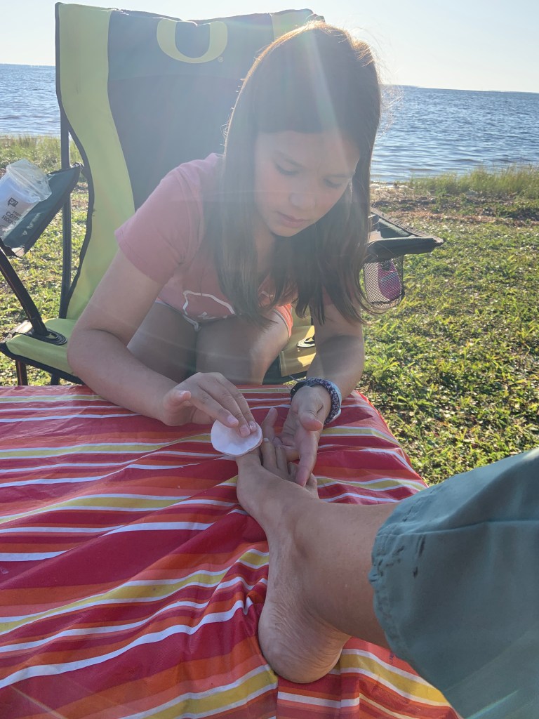 Overall, we’re just grateful for our neighbors, some of the nicest folks we could ever ask to have along this quarantine journey. Dan and Debbie from Bloomington, IL, who play the Guardians of the Galaxy soundtrack- AWESOME!; Barb and Mark from Tennessee who know just about everything about whiskey, marshmallow roasting and tools; Brian and his wife from Yakima, WA who are big time weight lifters and invite us to go on crazy adventures like kayaking 12 miles across the cape or going on rogue mountain biking rides; Mike and his two girls from Alabama who play volleyball in the evening with Izzy. Folks are checking in on each other, offering to go to the store for each other, picking up shells for crafts the kids are doing for Easter, sharing home remedies for bug bites and offering socially distant marshmallow roasts.