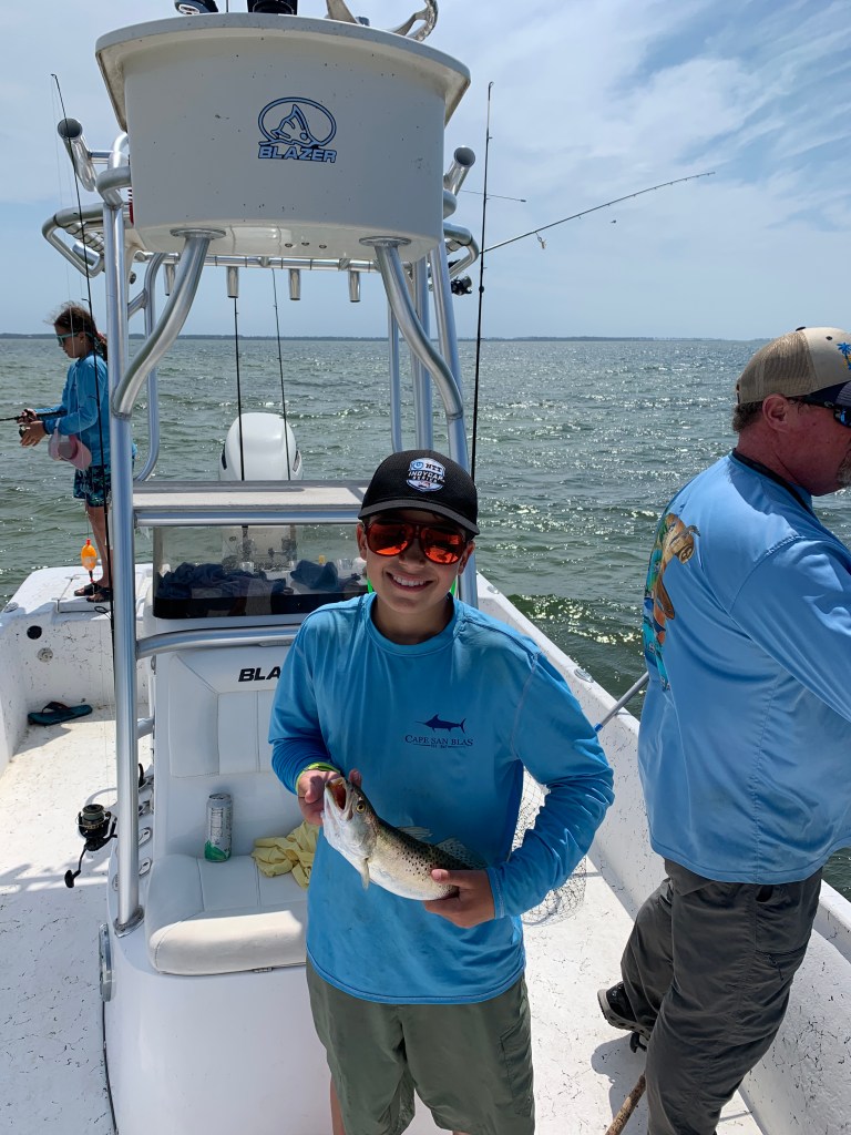 A silver lining about the beaches being closed while we still have bay side access to St. Joseph Bay is that there are fewer folks to compete with for the fish! Here are some great shots of the family. Ben was the fisherman of the day and caught a Sheepshead and two Speckled Brown Trouts for dinner. Clark managed to catch about a half dozen catfish, but unfortunately those are not good eats from the bay. We also saw a bunch of dolphins (tried to catch some pictures of their fins) that swam with us for a while and a few massive sea turtles.