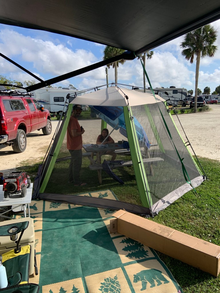 Starting March 20th, Gulf County commissioners and Port St. Joe city council closed down all beaches, all boat launches and have put a moratorium on any new vacation rental reservations more or less until the end of April in response to other more populated beaches doing the same. They wanted to avoid the domino effect that we started seeing as folks just migrated around the state for beaches that were open on Spring Break. Ron DeSantis, the governor of Florida, started putting more drastic measures on April 1st and ordered folks to shelter in place. So, good on us for getting ahead of this thing and booking our reservations through May, just in case. And as a result, we also got to stay at one of the premier waterfront sites that backs up to St. Joseph Bay! We picked up a sun tent so we could spend more time outside bug-free!