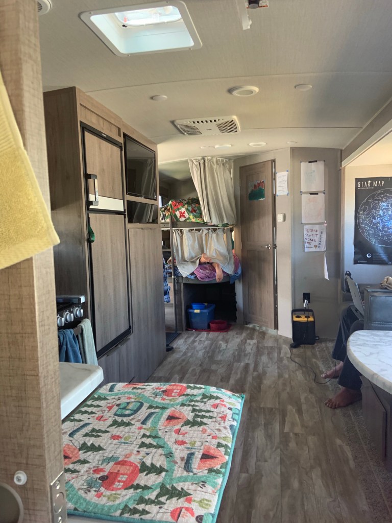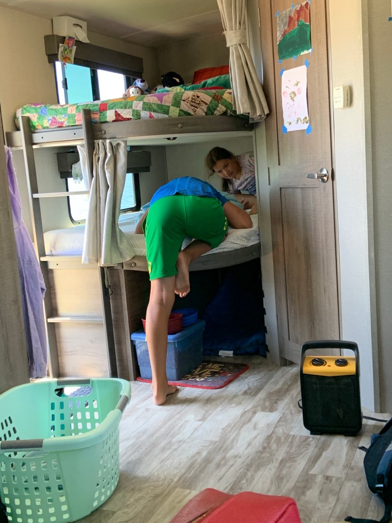 We are learning about all the local marine life, socially distancing with another FT RV family with 4 kids, riding bikes, working out each morning, crabbing, watching the sunsets, flying kites (and untangling them from the top of our camper), putting up bunk-hammocks, FaceTiming with friends and family, getting rad tans, draining bottles of sunscreen and bug spray and staying busy with schoolwork. From cross-country travelers to Florida snowbirds, we are still having our adventure! After all, we DID say at the beginning of our trip that we wanted to explore life a little differently! (2020 Understatement of the Year!)
