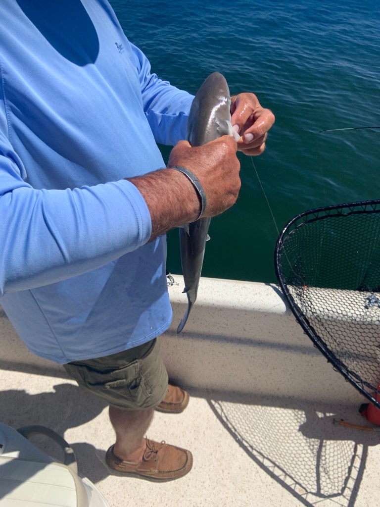 The next photos are from our day fish trip with Smitty! He’d offered to take the kiddos out on the boat and they were thrilled. We saw dolphins and sea turtles, sharks and trout and sting rays. UNBELIEVABLE! Here are some pictures and videos from our day.