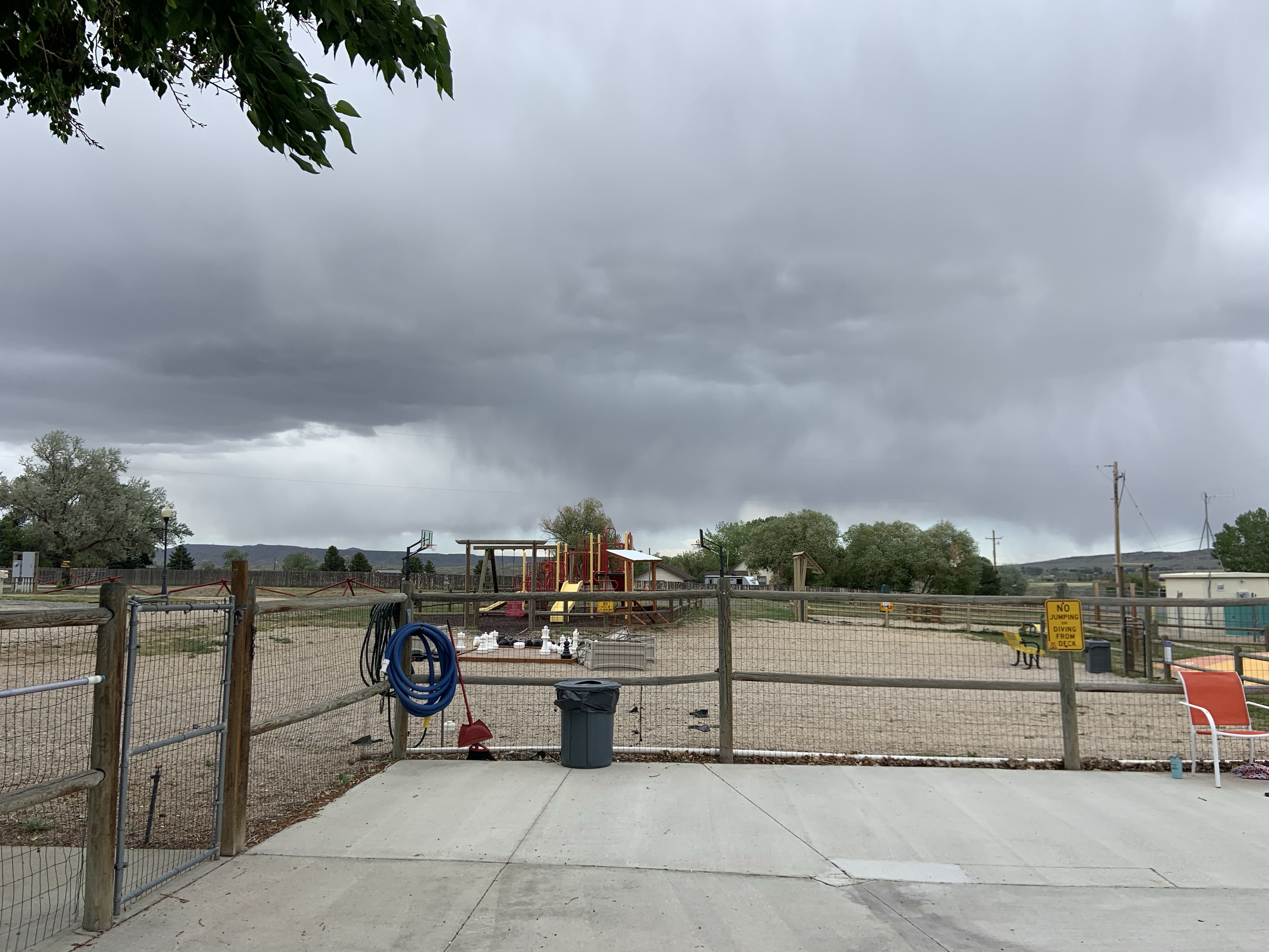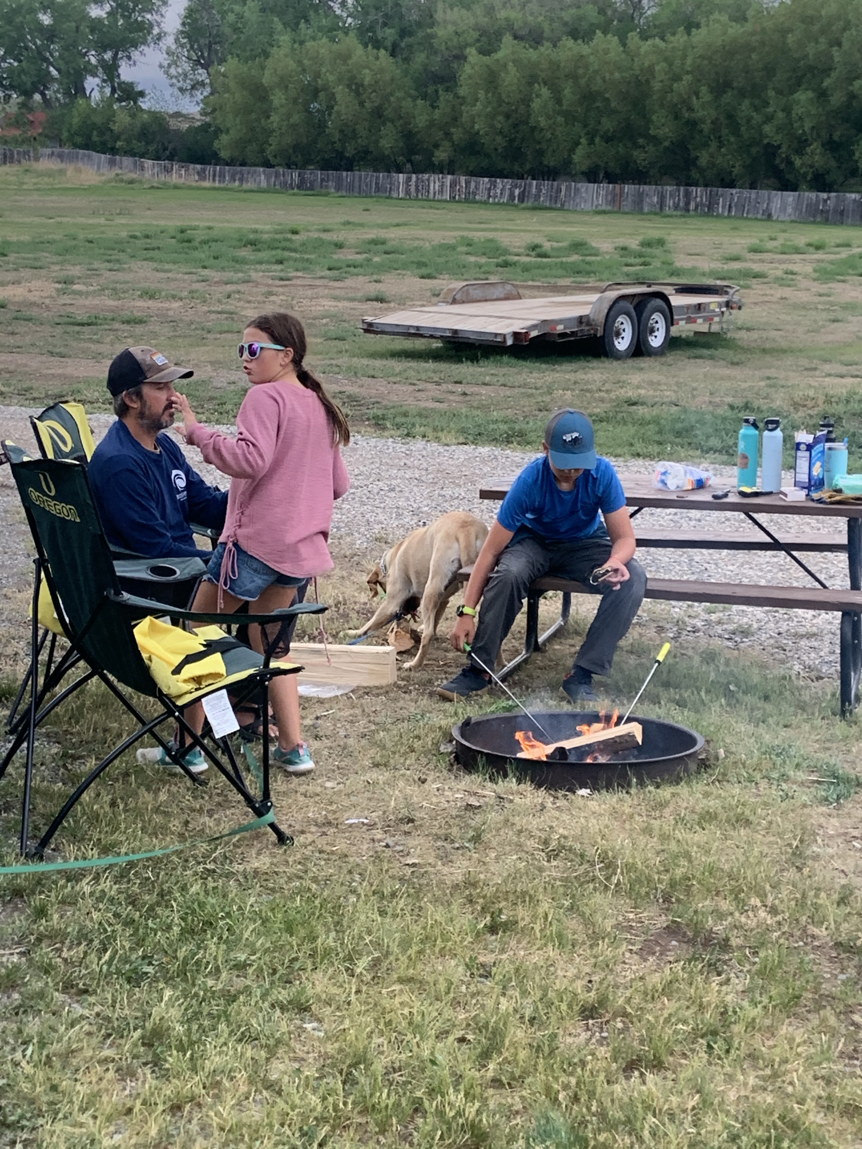 We got all set up at our site which seemed to be muddier and wetter than our neighbors. It took three chocks on one side to level. We figured the mud was from all the rain, and more was expected that evening. Lightning too! We got lucky and finished roasting marshmallows before the sky opened up.