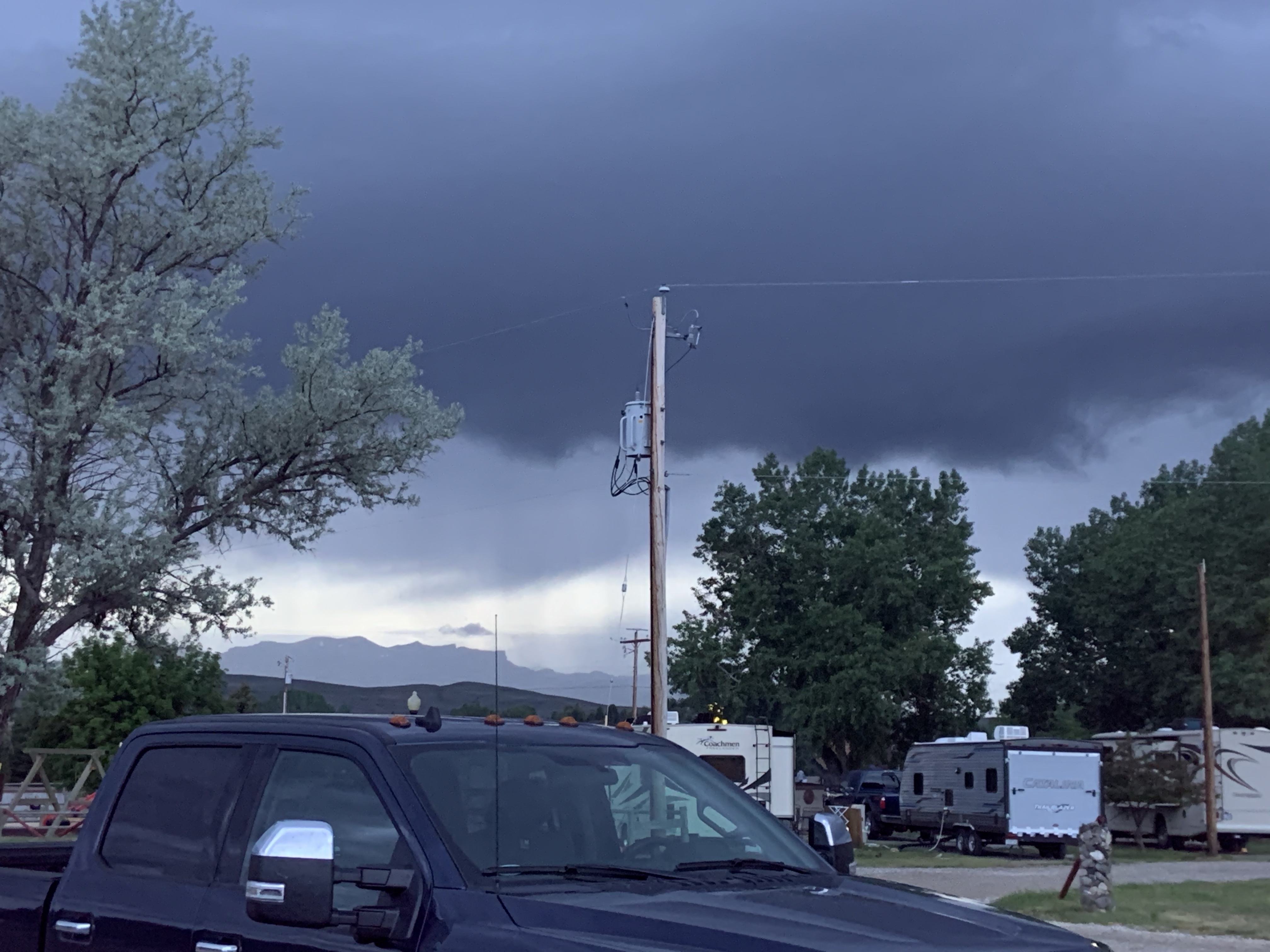 Then, about 30 minutes before getting to our campsite at the KOA in Cody, we ended up having to traverse on some random county road. Shame on us for not double checking Google Maps after we altered our route. Since we had been doing everything in RV Trip Wizard, we forgot to double check the route to filter for “no gravel/dirt roads” and found ourselves on some sparkling washboard dirt roads for about 5 miles. Yuck. At least we could commiserate with the class A behind us who also got sent on the same route- Cattle guards and all. 🐮 moo.